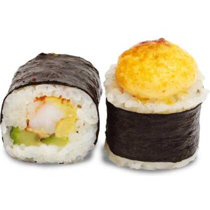 Лосось, японский омлет, сыр сливочный, икра красная имитированная