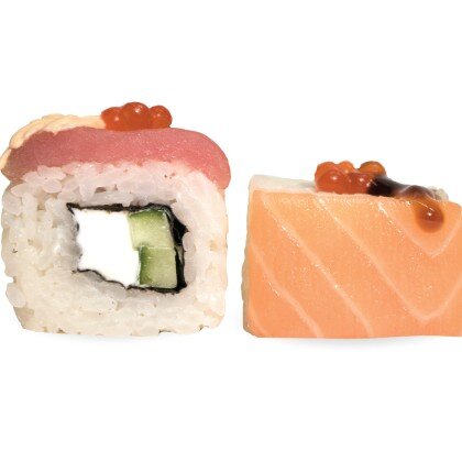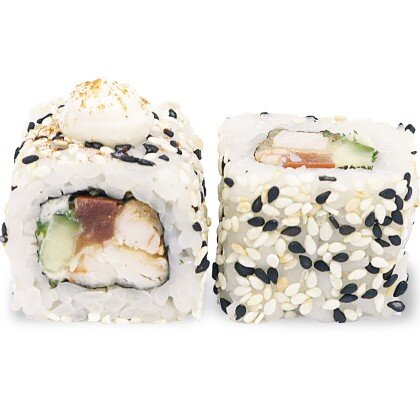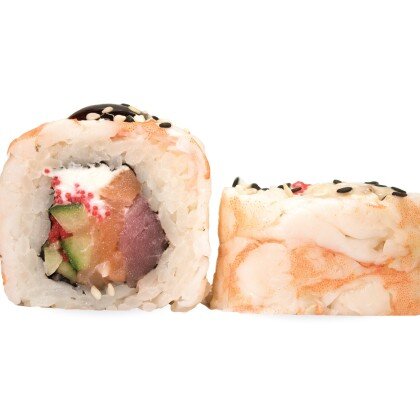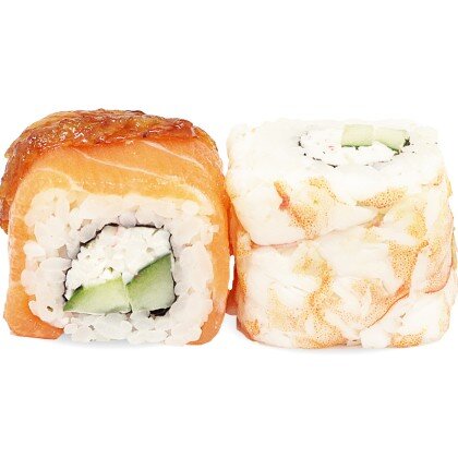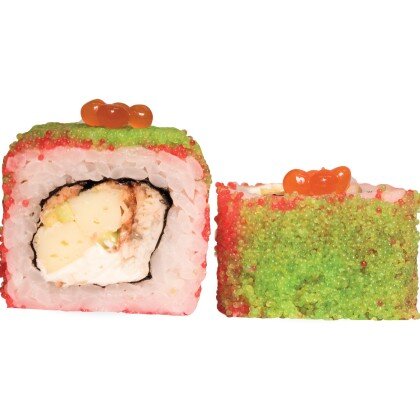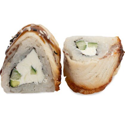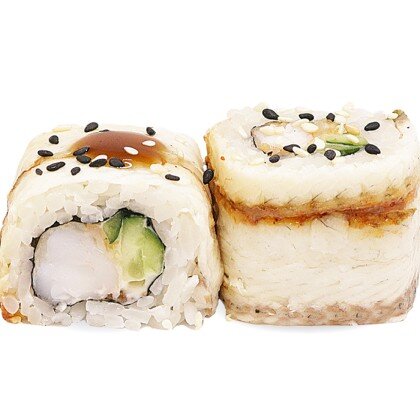 угорь копченый, креветка тигровая, японский омлет, огурец, спайси соус