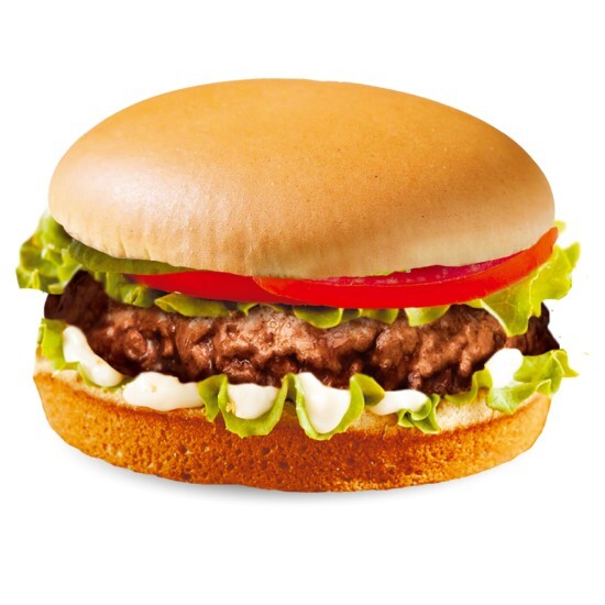 булочка, салат айсберг, помидор, огурец маринованный, соус белый, сыр Чедер, котлета говяжья